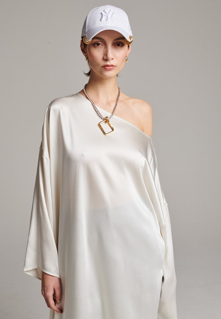 Flag Big Satin Dress Ivory