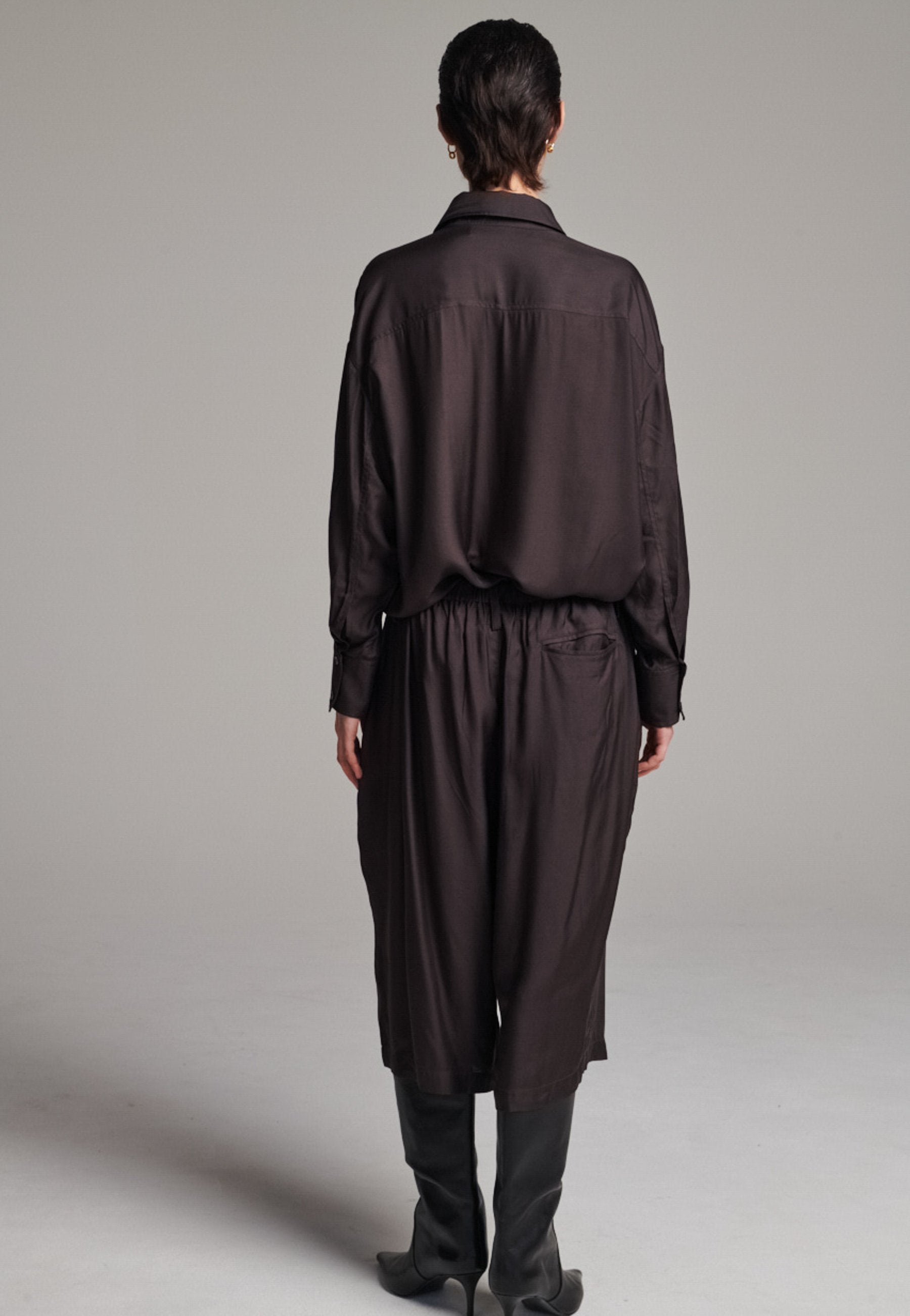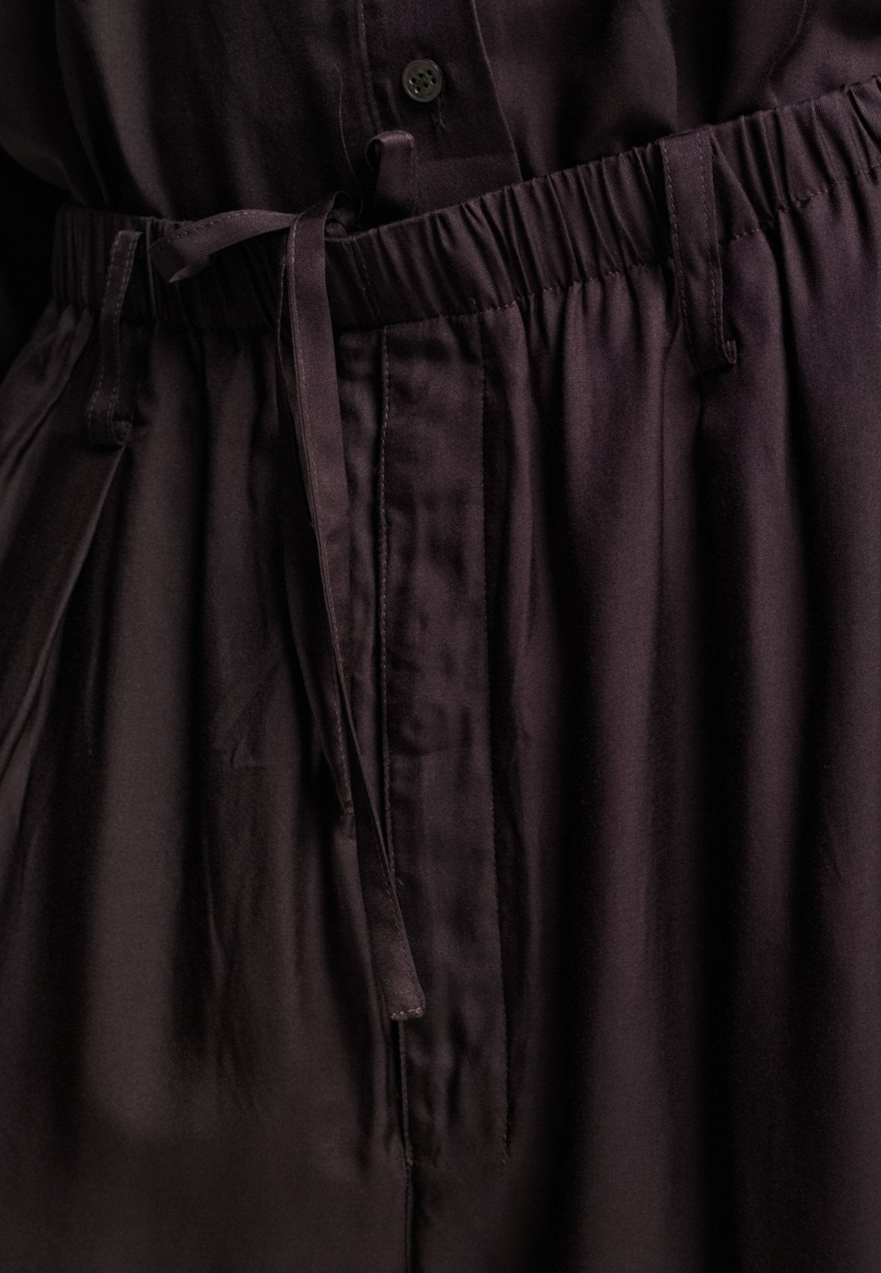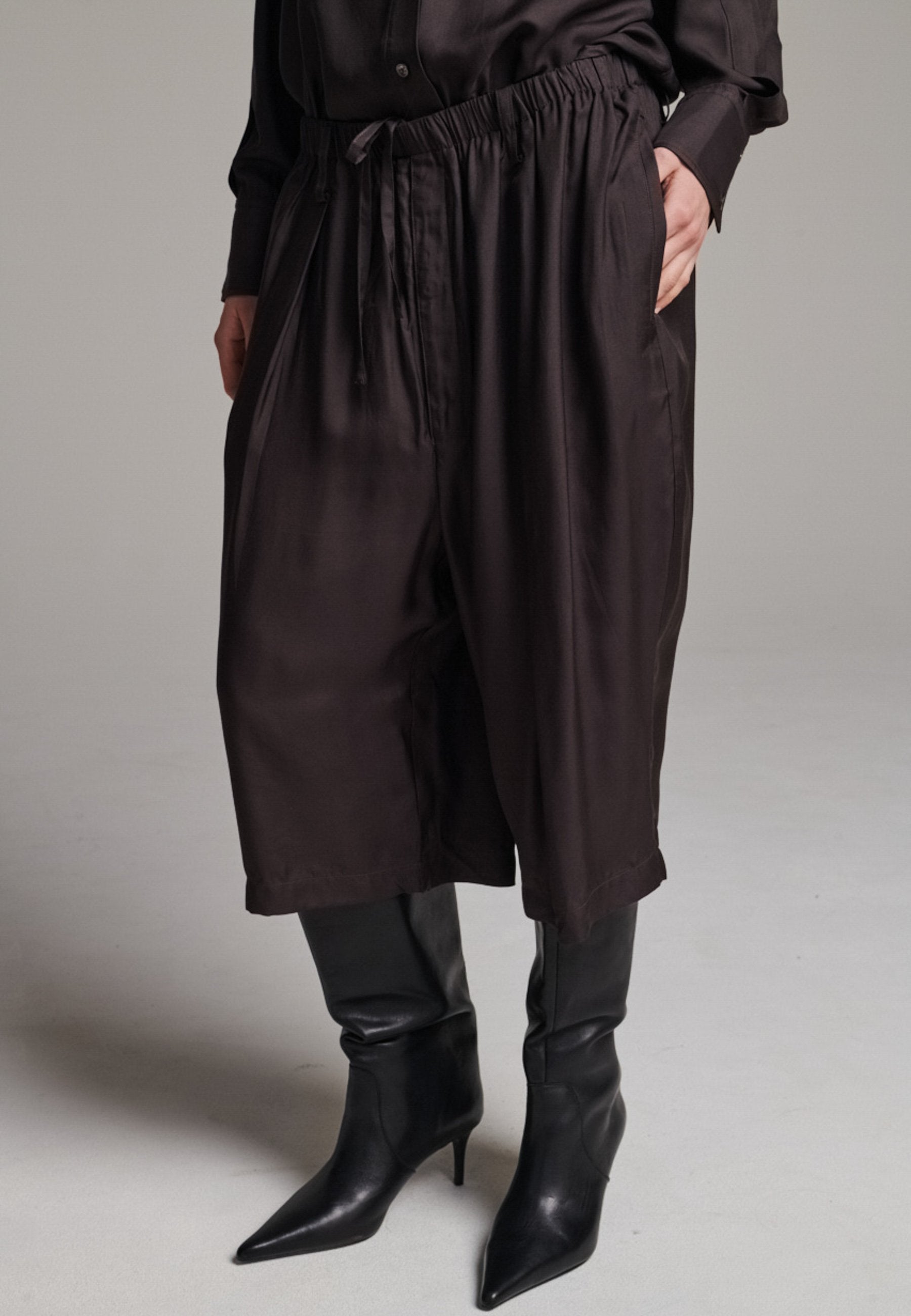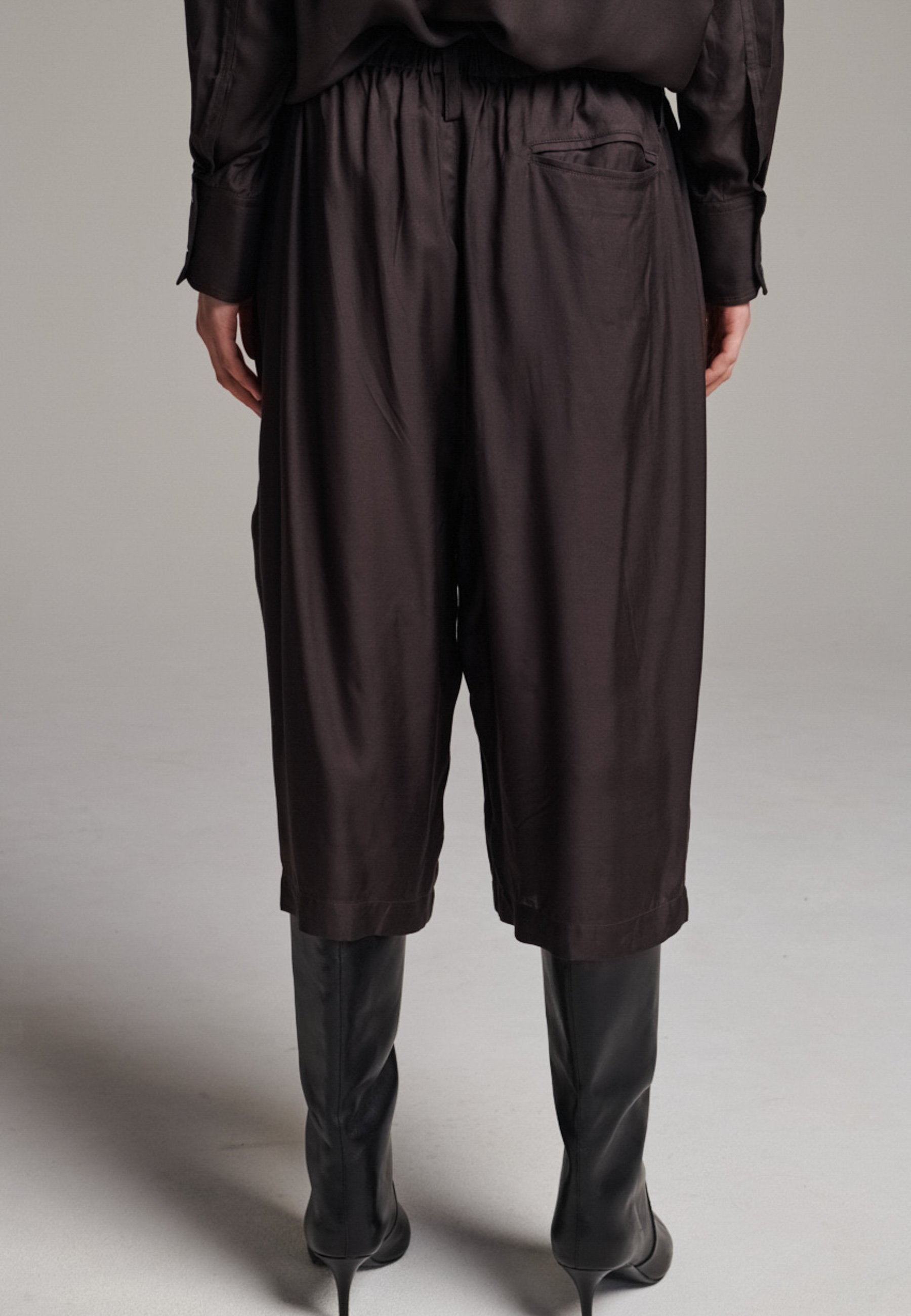 These Found Silk Dark Brown Habotai Pants offer a luxurious, relaxed look with a cropped design that falls just below the knee. Crafted from soft, lightweight silk habotai, they provide a smooth, fluid drape with a subtle sheen. The rich dark brown color adds a touch of sophistication, while the comfortable, slightly loose fit ensures effortless style. Perfect for both casual and semi-formal occasions, these pants are an elevated option for warm-weather dressing or layering with longer pieces.