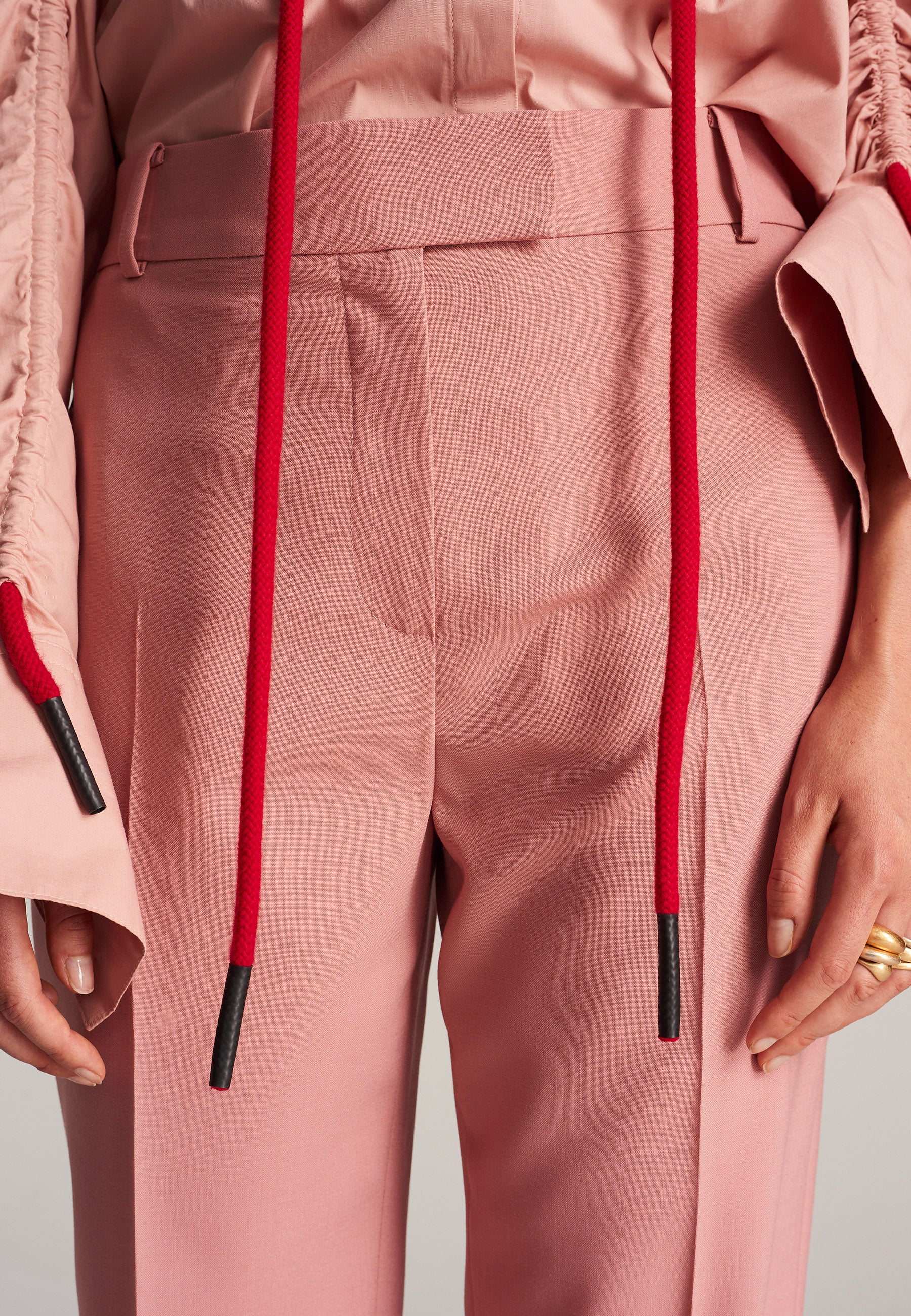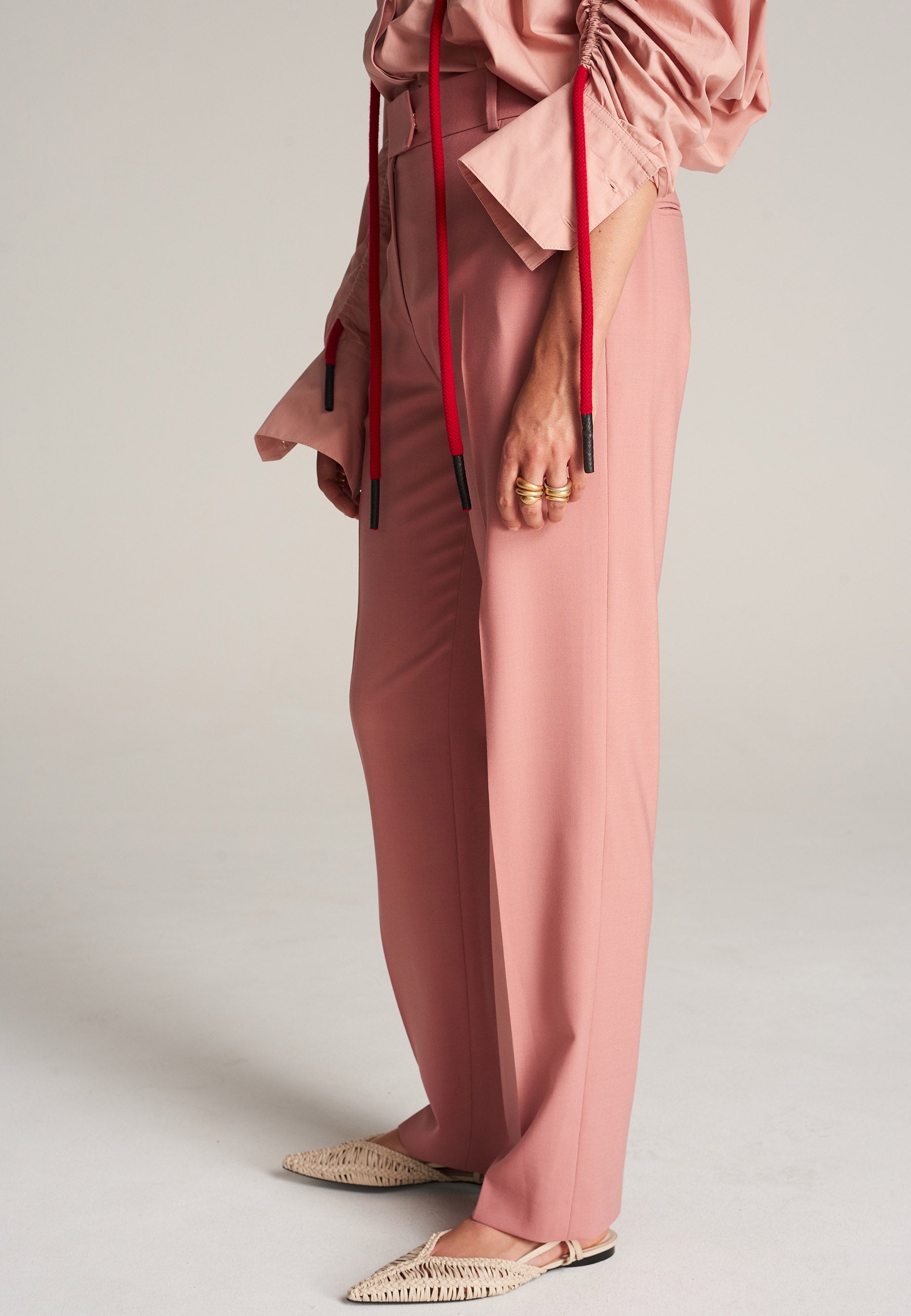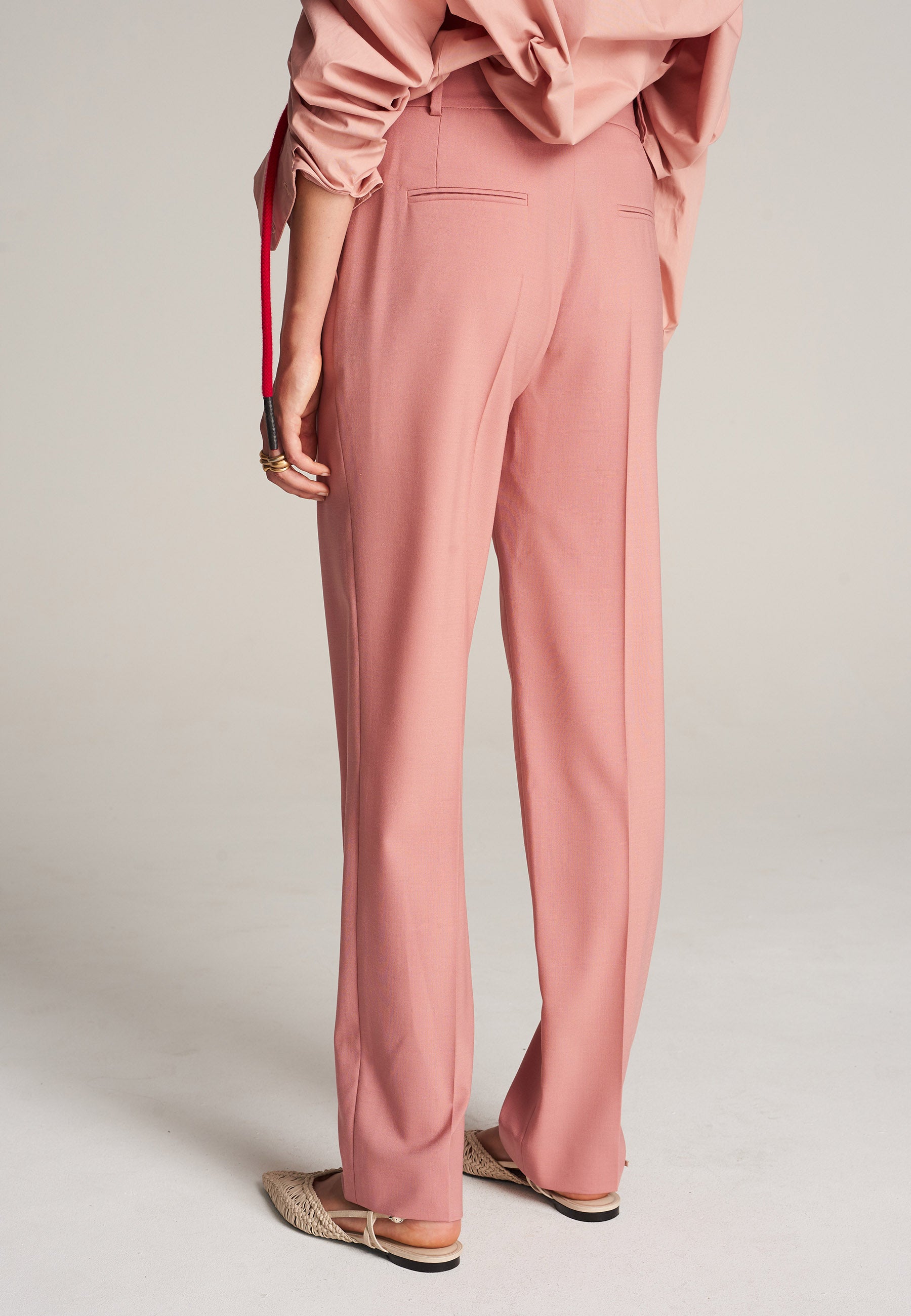 FRENKEN Line pink trouser made of fine wool with stretch for added comfort. The shape is highlighted by carefully pressed creases for the perfect fit. With belt loops, concealed fly-front and pockets. Also available in camel. This is a fresh version of workwear. Match it with the Scaling blazer or style it with a t-shirt for an effortlessly cool look.