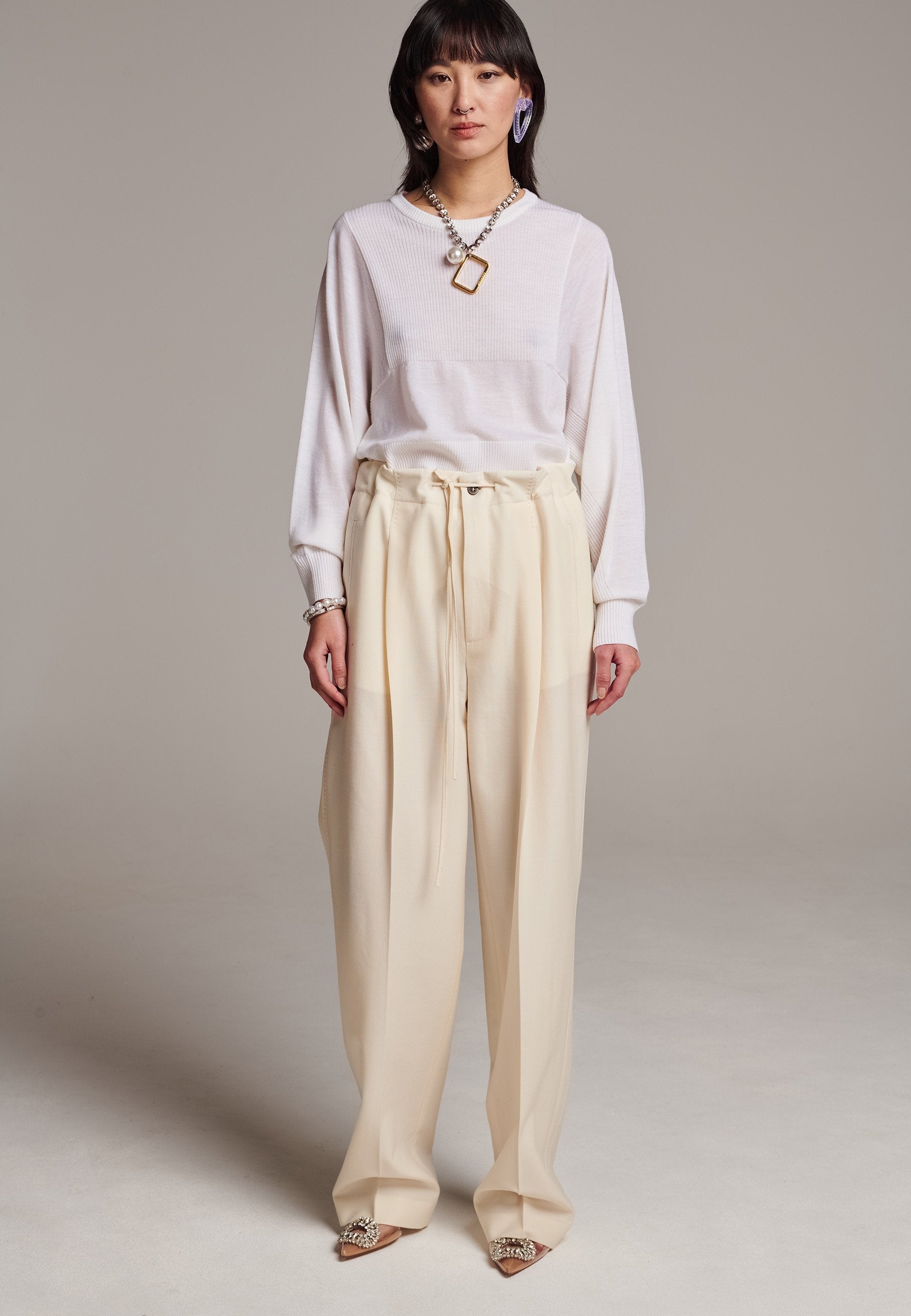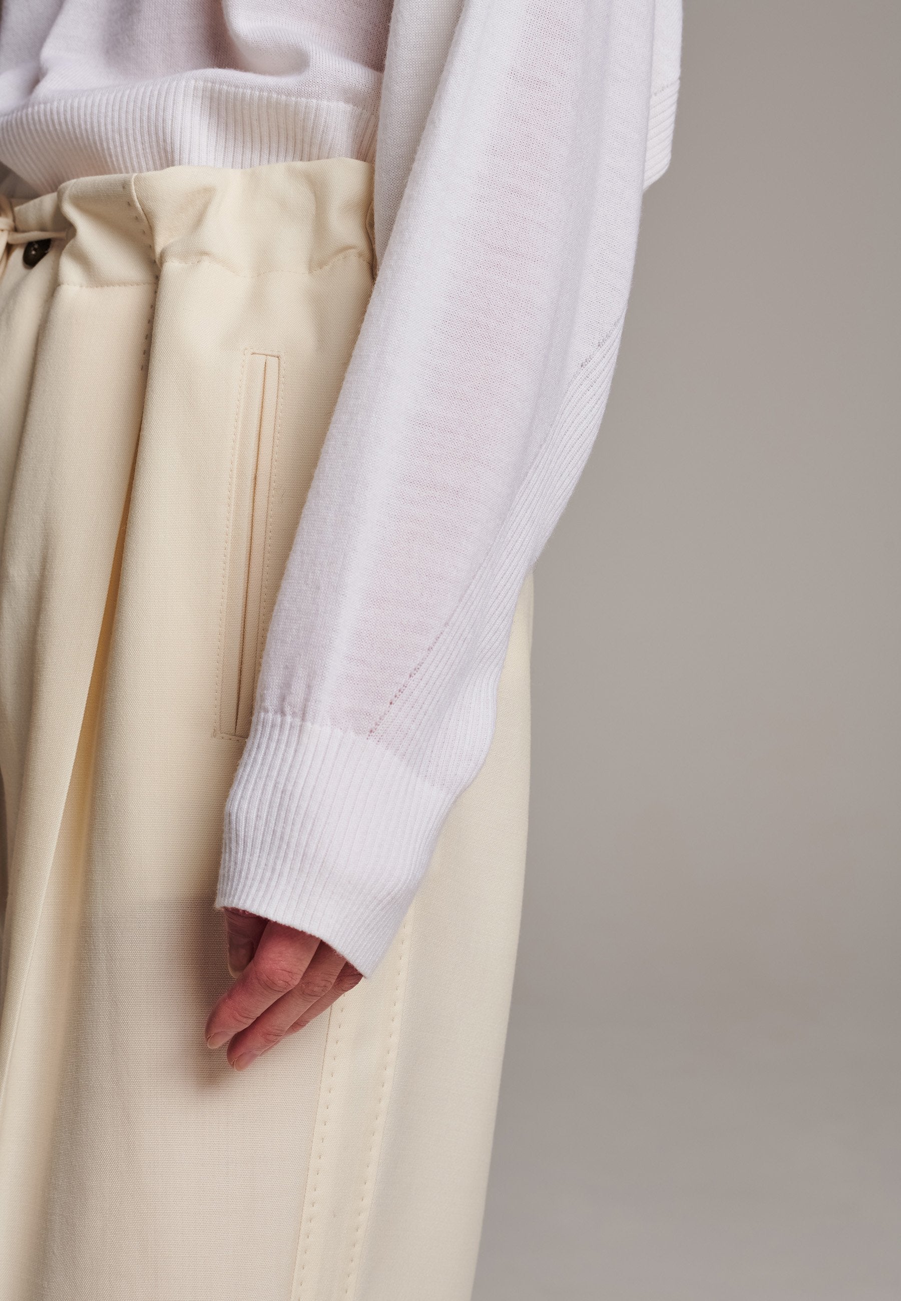 Sweater, crafted from luxurious virgin merino wool that gives a soft handle. Detailed with dropped shoulders, ribbed effect and batwing sleeves. Designed for a loose fit. Long in sleeves. This piece ensures you’ll stay snug and chic, even on the coldest days.